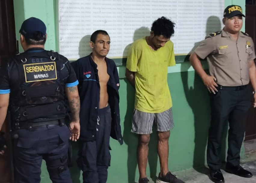 Los detenidos fueron identificados como Luis Oswaldo Amaral Grandez (41) e Isaías Jhomar Marco Montero (24). Ambos fueron trasladados a la comisaría correspondiente para continuar con las diligencias e investigaciones conforme a ley.